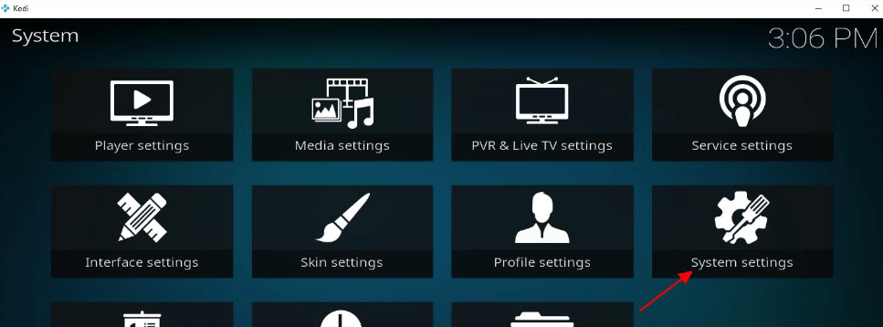 Krok 1:Otwórz odtwarzacz Kodi i z poziomuekran głównykliknij naUstawieniaprzycisk.