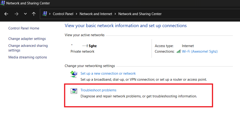 Stuknij w „Rozwiązywanie problemów” i postępuj zgodnie z instrukcjami wyświetlanymi na ekranie, aby zdiagnozować i rozwiązać wszelkie problemy z siecią.