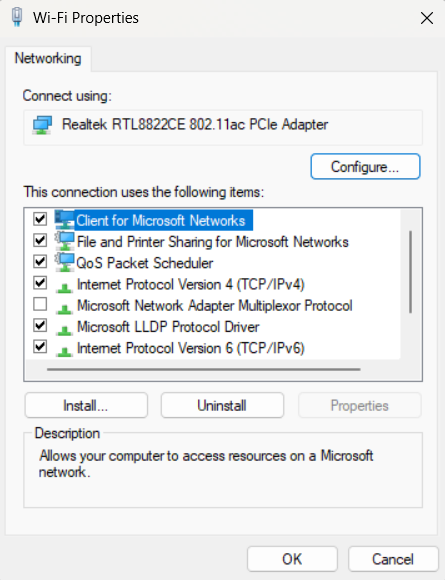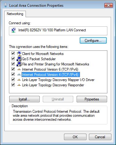 - W oknie dialogowym „Właściwości” przewiń w dół i znajdź „Protokół internetowy w wersji 4 (TCP/IPv4)” i wybierz go.