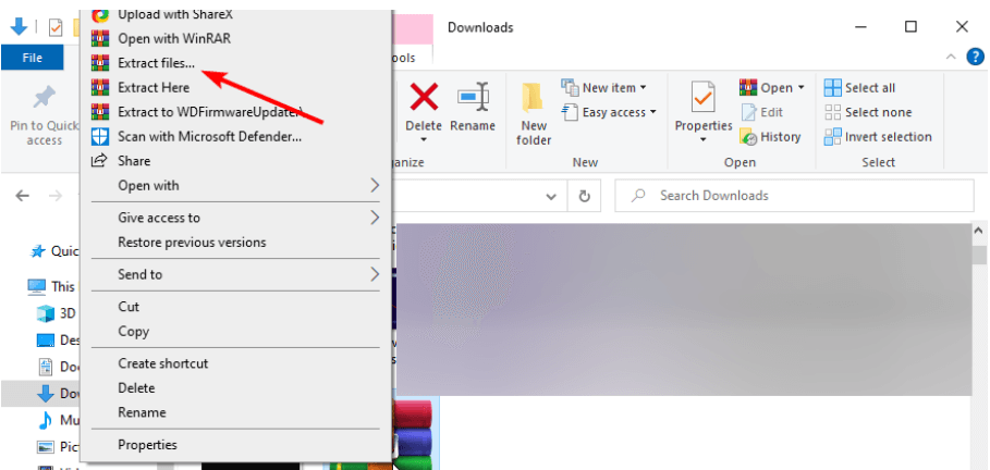 - Po pobraniu pliku,kliknij prawym przyciskiem myszyna nim i wybierzWyodrębnij plik.