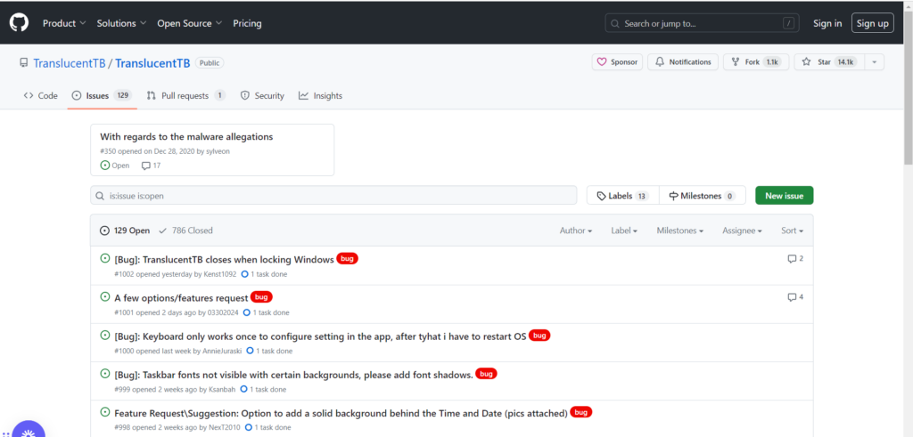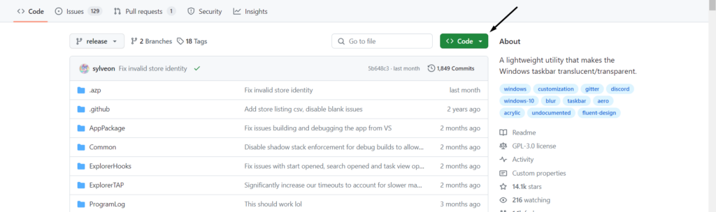 1.Aby skontaktować się z Deweloper programu TranslucentTB, przejdź doGitHub TranslucentTBstrona.
