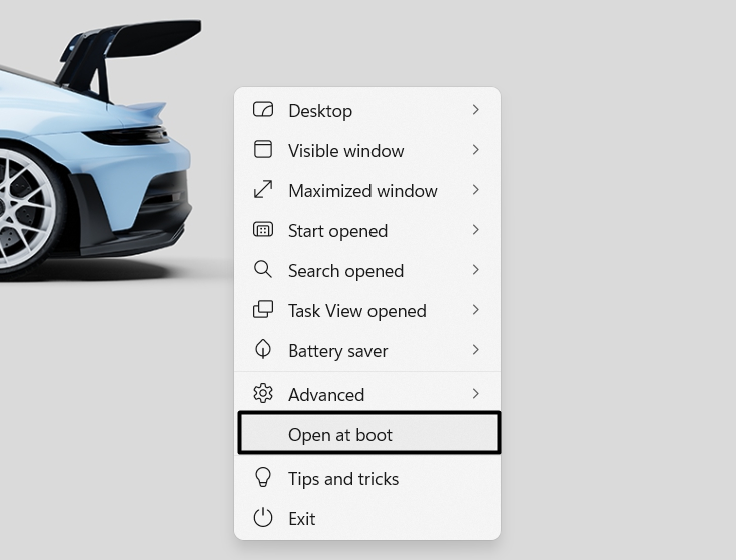 Jeśli aplikacja TranslucentTB nie uruchomi się natychmiast po uruchomieniu komputera z systemem Windows, oznacza toupewnij się, że można uruchomić komputer po uruchomieniu komputera. Możesz to zapewnić bezpośrednio w ustawieniach aplikacji. Sprawdź więc poniższe podpowiedzi, aby dowiedzieć się, jak z łatwością zrobić to samo: