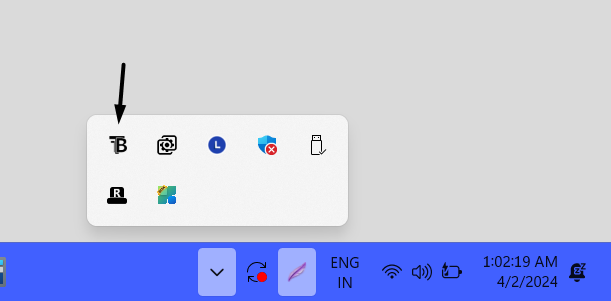 1.Otwórz zasobnik systemowy komputera z systemem Windows 11, a następnie kliknij prawym przyciskiem myszyPrzezroczysta ikona TB.
