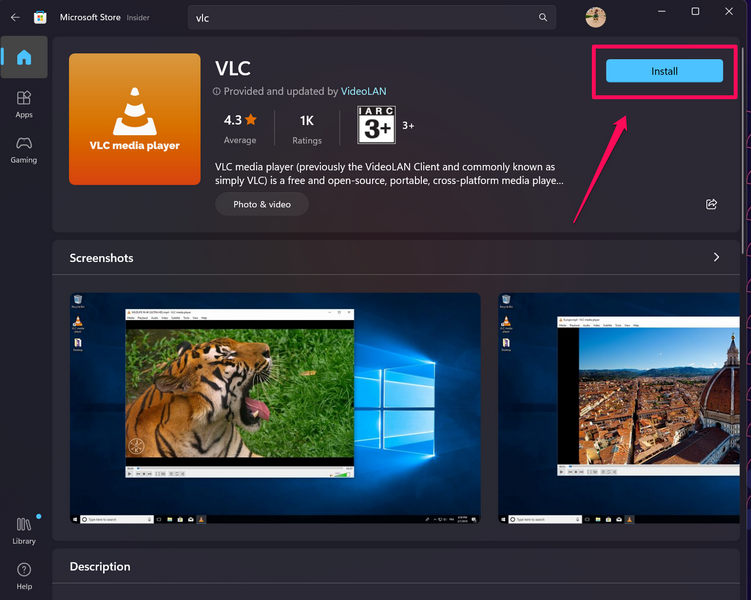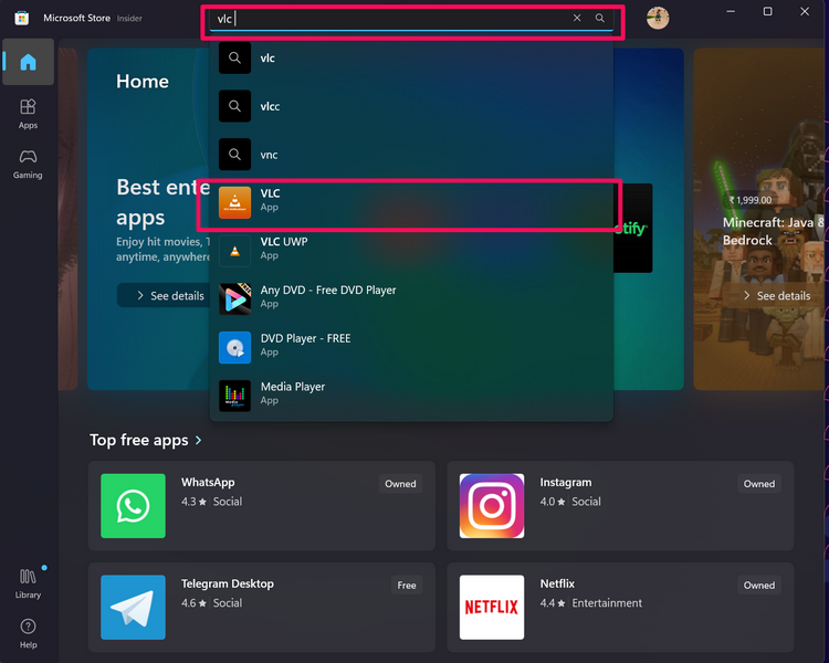 6.Użyj paska wyszukiwania powyżej, abyznajdź aplikację VLC Media Player.