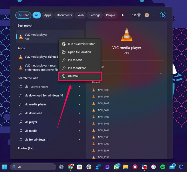 Jeśli żadna z powyższych metod nie rozwiąże problemu z niedziałającym programem VLC Media Player na komputerze lub laptopie z systemem Windows 11, możesz spróbować ponownie zainstalować aplikację. Wykonaj poniższe czynności, aby odinstalować VLC Media Player na komputerze lub laptopie z systemem Windows 11, a następnie zainstaluj go ponownie: