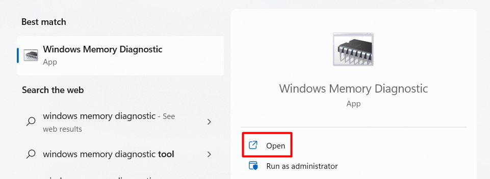 1.NaciśnijKlucz Windowsai wpiszDiagnostyka pamięciwPole wyszukiwania.