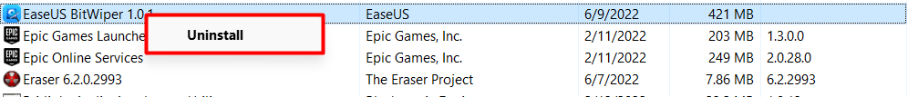 3.Raz znaleziony,kliknij prawym przyciskiem myszyw aplikacji i wybierzOdinstaluj.