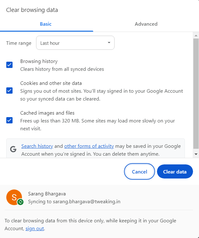 Rozwiązanie nr 4 – Wyczyść pamięć podręczną przeglądarki i pliki cookie