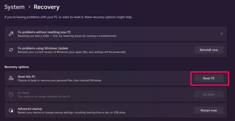 9. Zresetuj komputer lub laptop z systemem Windows 11
