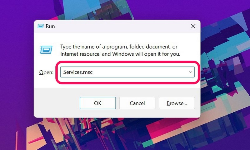 2.WpiszServices.mscw podanym polu tekstowym i naciśnij Enter.