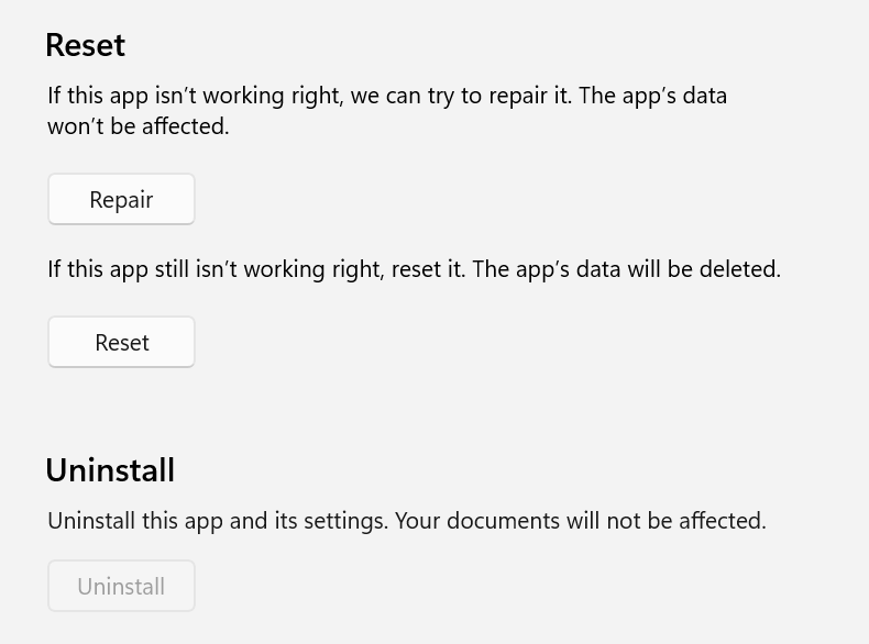 Jeśli plik WSReset.exe nadal nie działa, istnieje możliwość, że aplikacja Windows Store jest uszkodzona lub nie działa poprawnie. Spróbuj naprawić i zresetować Sklep Windows w tym przypadku. Spowoduje to przywrócenie ustawień aplikacji do stanu domyślnego i często rozwiąże problemy.