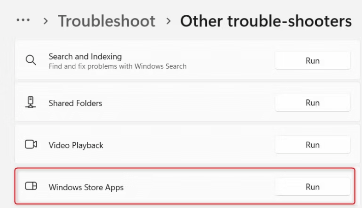 Krok 4:Teraz poszukaj narzędzia do rozwiązywania problemów z aplikacjami Windows Store, a następnie kliknij przycisk URUCHOM.