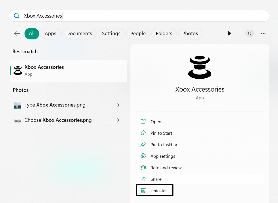 Jednym ze sposobów rozwiązania problemów z kontrolerem Xbox jest ponowna instalacja aplikacji Akcesoria Xbox, ponieważ może się zdarzyć, że w aplikacji występują błędy i usterki. W takim razie sugerujemy Cizainstaluj ponownie aplikację Akcesoria Xboxna komputerze, aby się ich pozbyć, wykonując poniższe kroki: