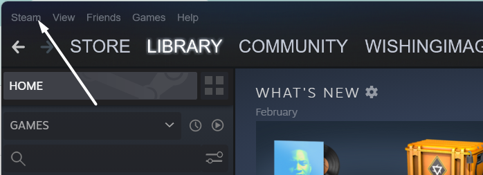 1.UruchomAplikacja Steamna komputerze i kliknij przyciskParaopcję w górnym menu nawigacyjnym.