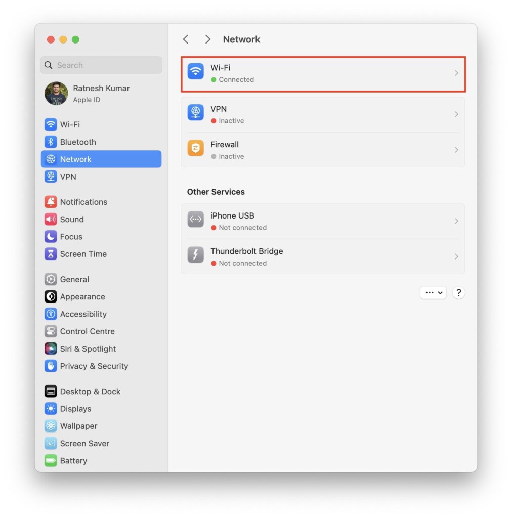 3. KliknijSiećna lewym pasku bocznym i wybierz Wi-Fi w prawym okienku.
