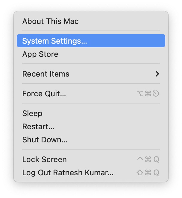 2. WybieraćUstawienia systemowez menu rozwijanego.