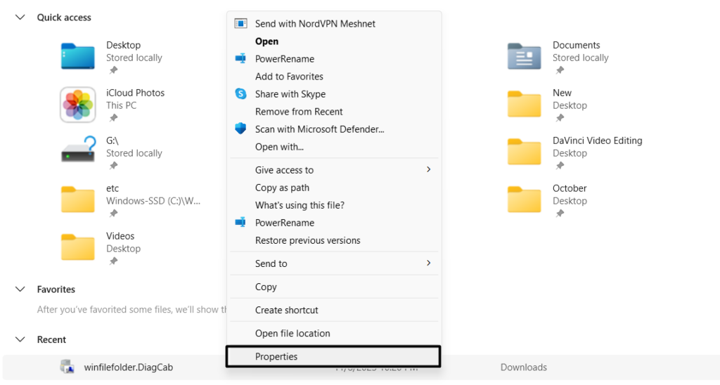 1.OtwarteEksplorator plików, kliknij prawym przyciskiem myszy problematyczny plik ZIP, a następnie wybierzWłaściwościz tego.