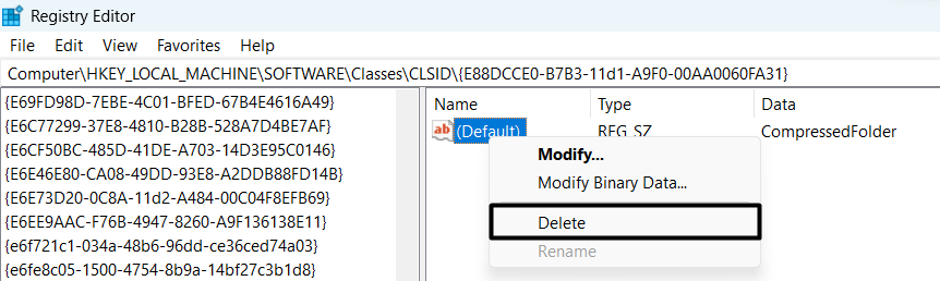 Łatwym sposobem na naprawienie funkcji ZIP niedziałającej w systemie Windows 11 jest:ponownie włącz tę funkcję. Mamy nadzieję, że rozwiąże to wszystkie problemy z nim związane. Możesz sprawdzić poniższe kroki, aby dowiedzieć się, jak wyłączyć i ponownie włączyć obsługę ZIP w systemie Windows 11 za pomocą aplikacji Edytor rejestru: