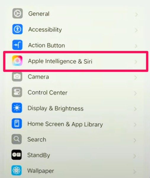 - Po ponownym uruchomieniu iDevice przejdź doAplikacja Ustawienia > Apple Intelligence i Siri.