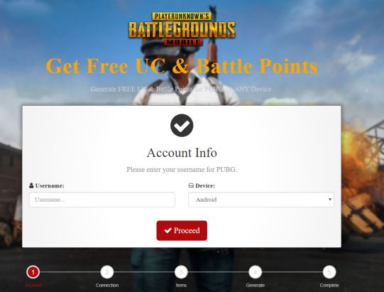 - Ta strona obiecuje daćBezpłatne UC i BP dla użytkowników, mówiąc, że może je wygenerować dla PUBG Mobile na Androida, iOS i emulatory.
