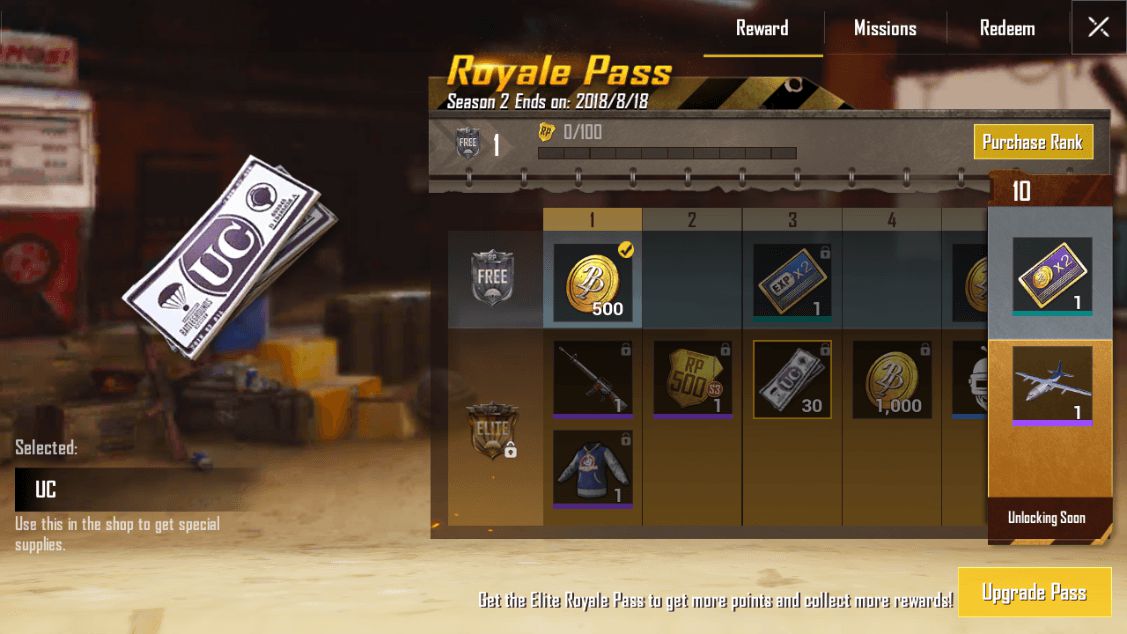 Jak widać na obrazku, zdobywanie RP gwarantuje Ci UC (30 UC za każde 5 RP). Jeśli uda ci się ukończyć wszystkie misje w 8 tygodni, otrzymasz z powrotem swoje 600 UC. Wykorzystaj je, aby kupić kolejny karnet i powtarzaj proces tak długo, jak chcesz!