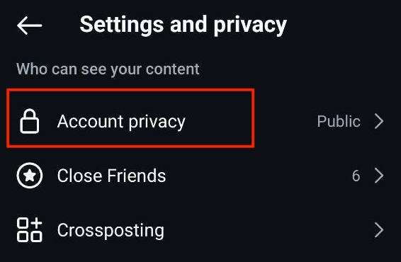 - Przewiń ustawienia prywatności i wybierzPrywatność konta.