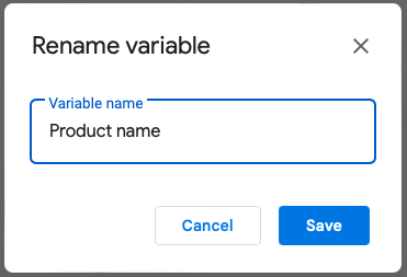 Otwórz pasek boczny Zmienne, umieść kursor nad zmienną, której nazwę chcesz zmienić, i wybierzEdytuj nazwęikona (ołówek).