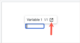 Następnie zobaczysz zaktualizowaną nazwę na pasku bocznym, listę zmiennych do wstawienia i wewnątrz samej zmiennej, dopóki nie przypiszesz jej wartości.