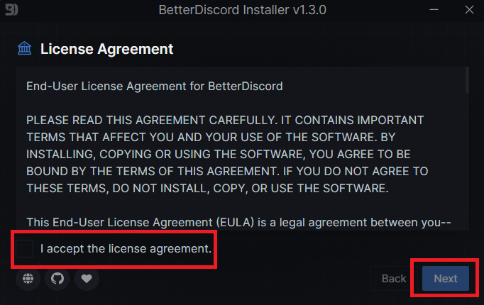5.WybierzZainstaluj BetterDiscordopcję i kliknijNastępnyprzycisk.