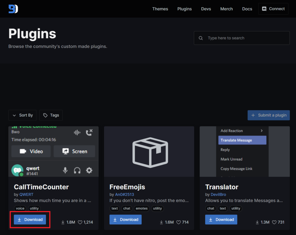 Przyjazne dla użytkownika wtyczki:Mod BetterDiscord zapewnia także obsługę wtyczek do standardowej aplikacji Discord. Za pomocą tych wtyczek możesz dodawać nowe funkcje i funkcjonalności do aplikacji i poprawiać ogólną dostępność. Mod oferuje setki wtyczek, w tym więcej niż jedną do moderowania czatu, zarządzania użytkownikami i dostosowywania serwera.