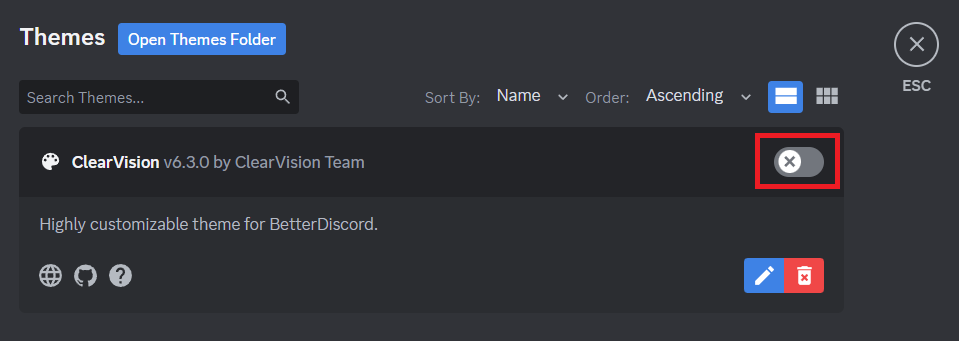 1.Otwórz oficjalną stronę BetterDiscord i kliknijMotywy.