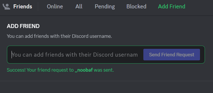 Aby dodać znajomego, przejdź doDodaj znajomychna stronie głównej Discorda, wpisz identyfikator Discord swojego znajomego w odpowiednim miejscu i kliknijWyślij zaproszenie do znajomychprzycisk. Twój znajomy otrzyma prośbę, a kiedy ją zaakceptuje, zobaczysz jego imię i nazwisko w poluPrzyjacielesekcję Twojego Discorda.
