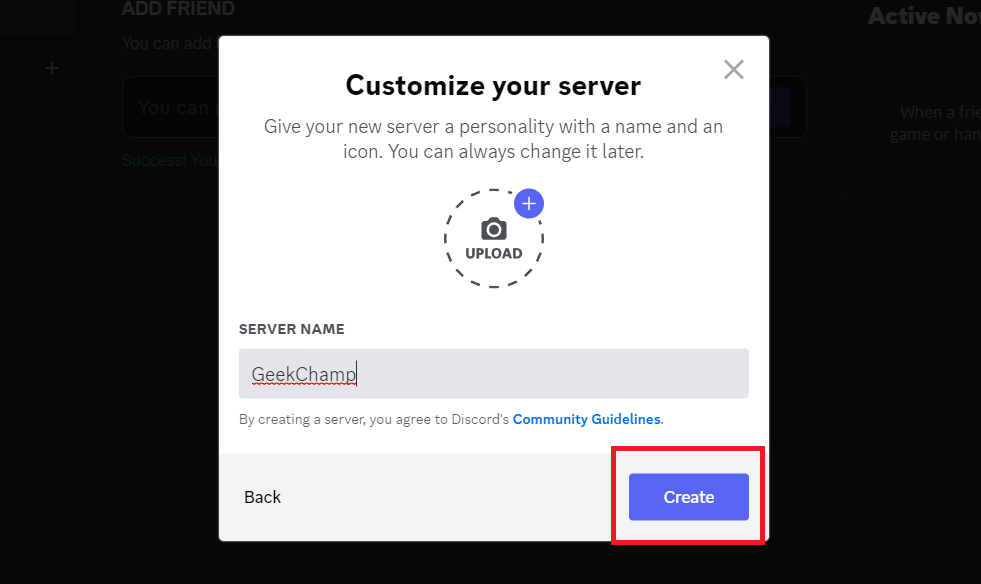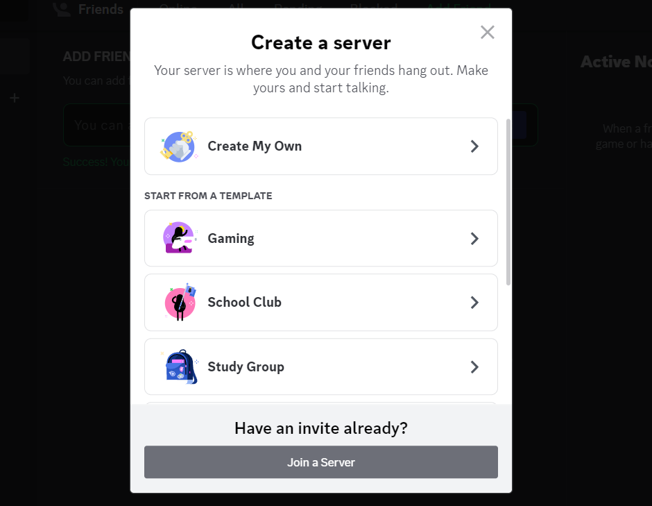 Pomyślnie utworzyłeś serwer na Discordzie. Teraz dostosuj serwer, zaproś znajomych i ciesz się grą.