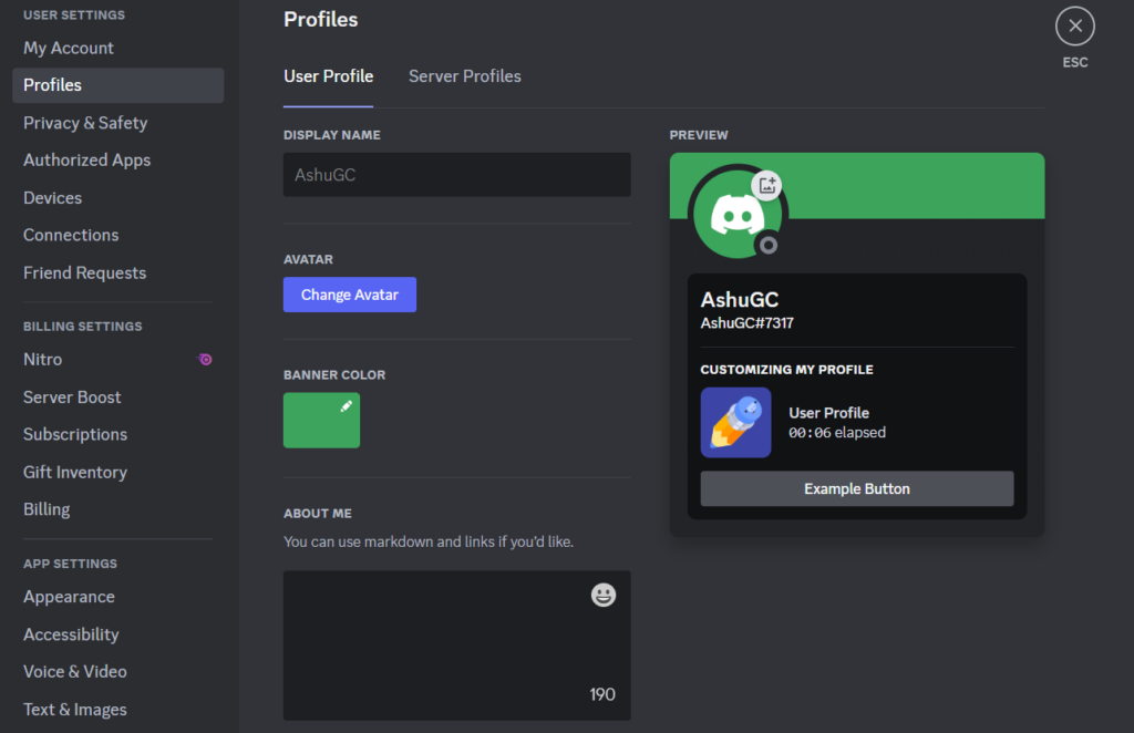 Pierwszą rzeczą, którą powinieneś zrobić po zainstalowaniu Discorda, jest dostosowanie swojego profilu. Możesz zmienić swoją nazwę wyświetlaną, dodać zdjęcie profilowe, dostosować kolor banera i dodać biografię, która Cię opisuje. Oto jak możesz dostosować swój profil w aplikacji Discord: