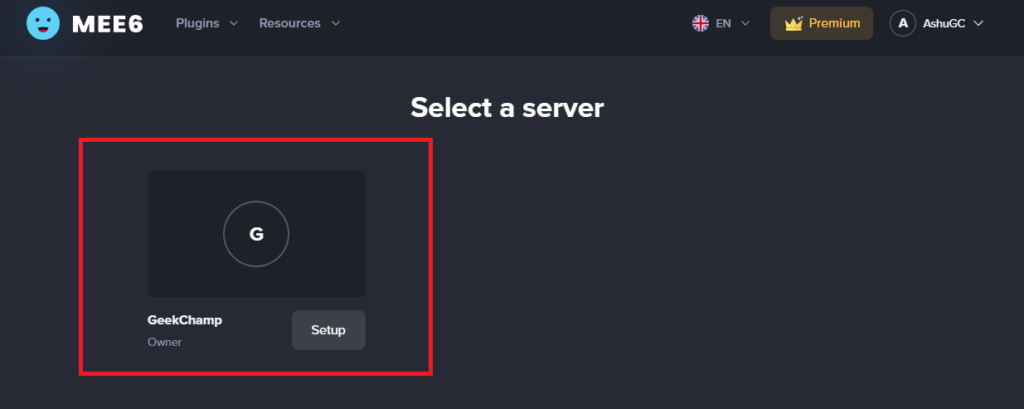 Ponadto możesz zarządzać ustawieniami bota MEE6 na jego oficjalnej stronie internetowej, otwierając pulpit nawigacyjny serwera.
