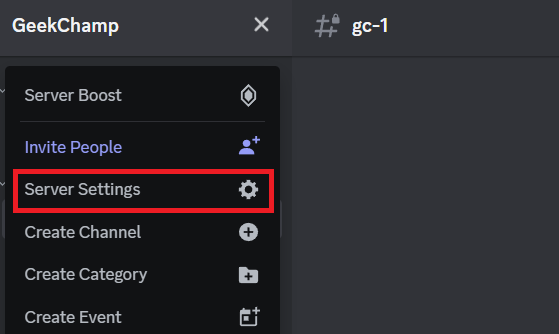 1.Kliknij menu rozwijane obok nazwy serwera w lewym górnym rogu i otwórzUstawienia serwera.