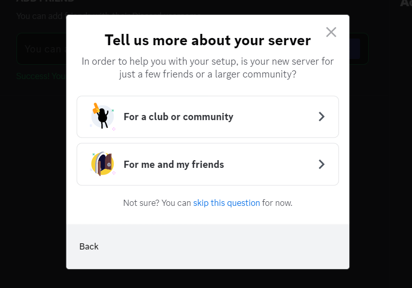 3.Jeśli tworzysz serwer dla swoich znajomych, wybierzDla mnie i moich przyjaciółopcja. Wybierz inaczejDla klubu lub społecznościmożliwość utworzenia serwera społecznościowego.