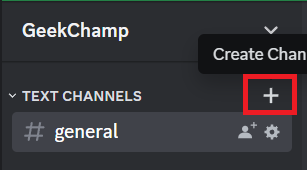 1.Kliknij„+”ikona obok kanału, w którym chcesz utworzyć nowy kanał tekstowy lub głosowy.