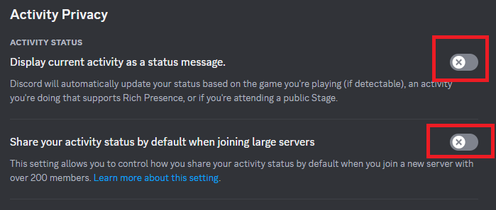 2.Włącz przełącznik dlaWyświetla bieżącą aktywność jako komunikat o stanie.