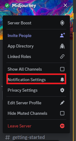 1.Kliknij ikonę rozwijaną obok nazwy serwera i wybierzUstawienia powiadomień.