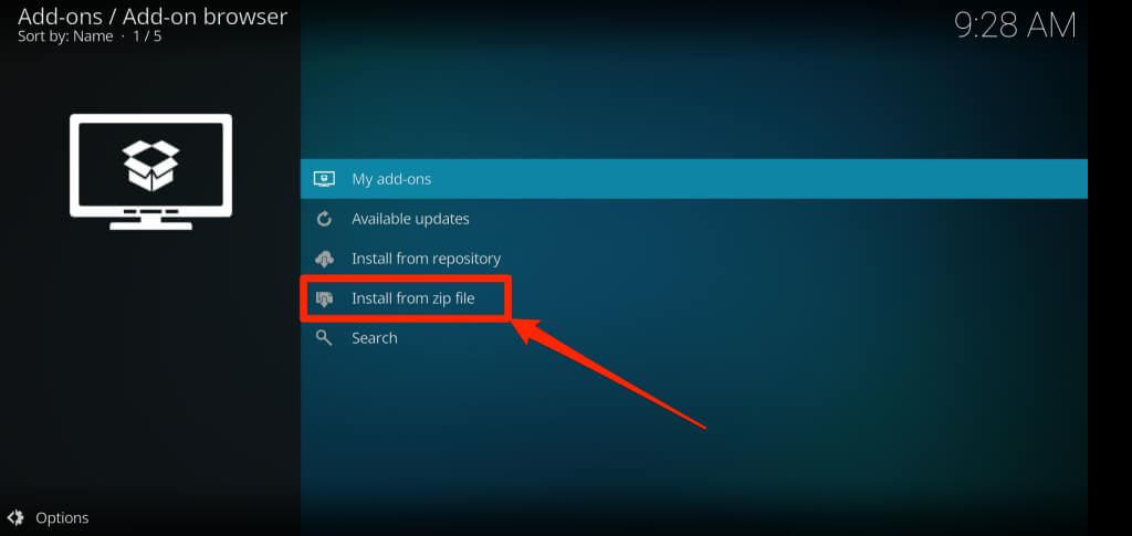 Przed zainstalowaniem dodatku pobranego poza repozytorium w aplikacji Kodi skonfiguruj odtwarzacz multimedialny tak, aby zezwalał na dodatki ze źródeł zewnętrznych. Pobierz dodatek z repozytorium innej firmy (w formacie ZIP) i wykonaj poniższe kroki, aby go zainstalować.
