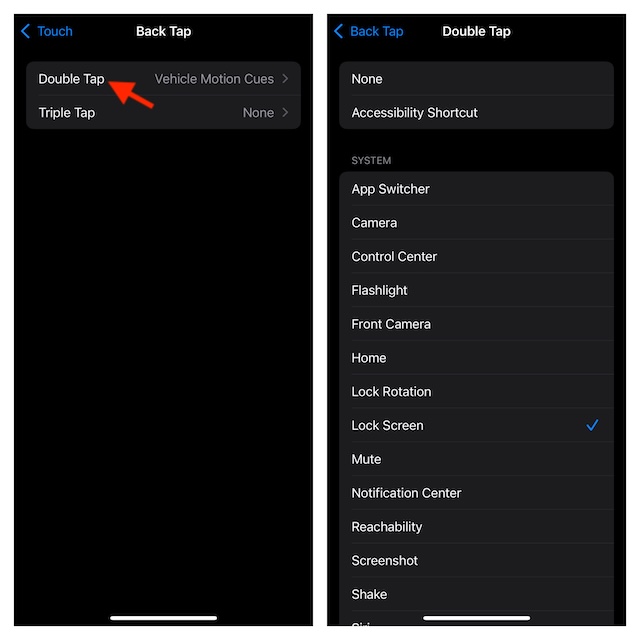 Prawdopodobnie najlepszą częścią funkcji „Back Tap” jest to, że obsługuje ona szeroki zakres działań. Dlatego niezależnie od tego, czy chcesz uruchomić skrót Siri, aktywować funkcję systemową, czy włączyć ulubioną funkcję ułatwień dostępu, jest to zaznaczone. Jeśli chodzi o skrót na ekranie blokady, działa zgodnie z oczekiwaniami. Są jednak pewne rzeczy, o których należy pamiętać, radząc sobie z tym problemem (więcej o tym później).