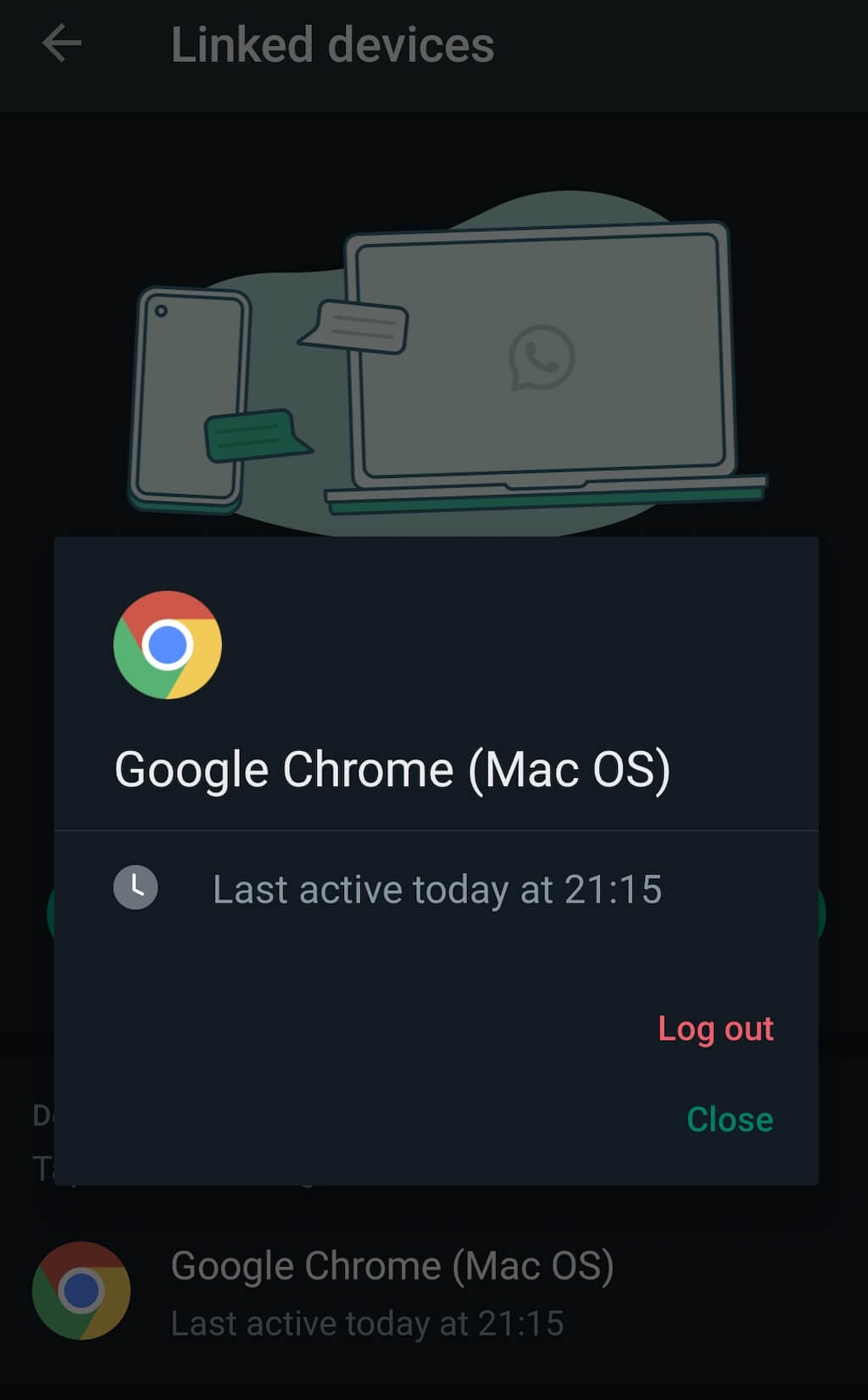Jeśli jesteś już z dala od komputera i chcesz się wylogować z WhatsApp Web, możesz to zrobić, korzystając z aktywnej sesji WhatsApp na swoim smartfonie.