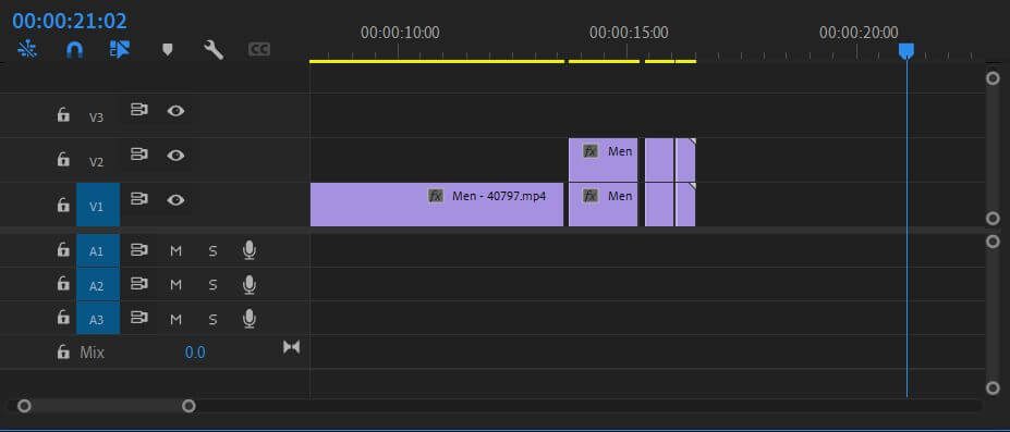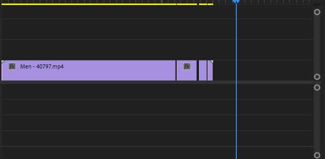 - Aby materiał filmowy był przycinany i wycinany, podziel klip w miejscu, w którym chcesz, aby zaczęła się usterka, a następnie nieco go rozsuń, jak na zrzucie ekranu poniżej.