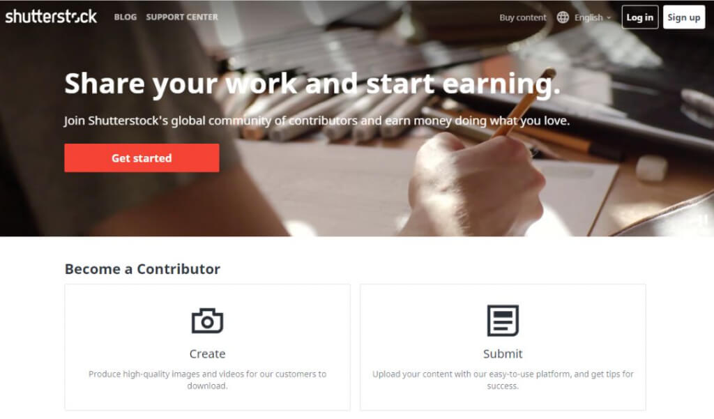 Na przykład,na Shutterstocku, wystarczy, że zarejestrujesz się i zaczniesz przesyłać swoje treści. Jeśli i kiedy Twoje zdjęcia zostaną zakupione przez użytkowników, zarabiasz pieniądze. To świetne źródło dochodu pasywnego.