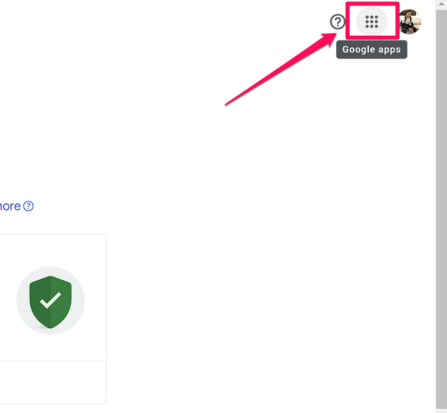 3.NaStrona główna konta Google, kliknijPrzycisk Google Appsobok ikony profilu w prawym górnym rogu ekranu.