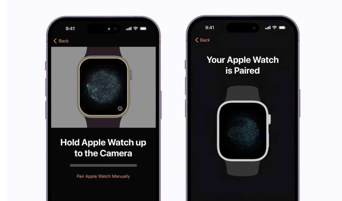 - Po prostu umieść smartwatch w ramce ekranowej i poczekaj na komunikat „Apple Watch jest sparowany”. Jeśli nie możesz użyć aparatu iPhone'a, wybierz opcję „Sparuj Apple Watch ręcznie” i postępuj zgodnie z instrukcjami wyświetlanymi na ekranie.