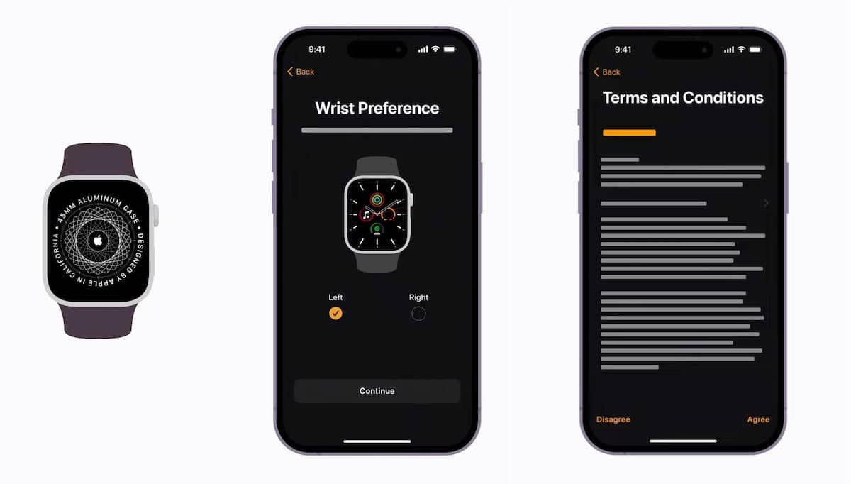 - Po wybraniu opcji „Skonfiguruj jako nowy zegarek Apple Watch” dotknij lewej lub prawej opcji w interfejsie preferencji nadgarstka i dotknij Kontynuuj.