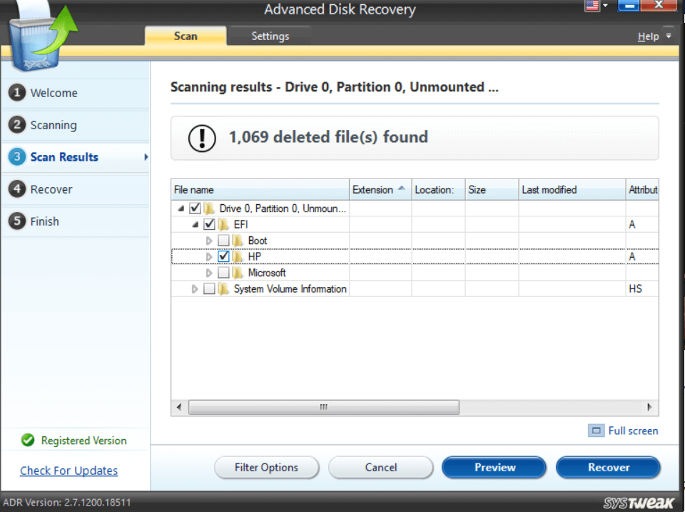 Krok 6 –Poczekaj, aż skanowanie się zakończy. Ze zeskanowanych wyników po prawej stronie wybierz plik lub folder, który chcesz odzyskać. Aby to zrobić, kliknij pole wyboru obok nazwy pliku lub folderu. Możesz nawet kliknąćZapowiedźaby wyświetlić podgląd zawartości pliku lub folderu.