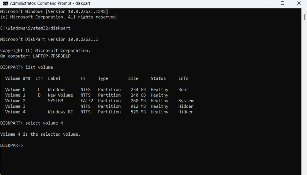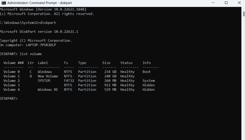 3. Następnie wpiszobjętość listyi naciśnijWchodzić. Zanotuj numer woluminu, który się stałSUROWY.